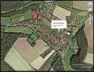 - Neben der unnatürlich hohen Lage (nicht im Taltiefsten) der Garte ist ein weiterer Grund für die Überschwemmung in der künstlich angelegten doppelt-rechtwinkelige Verlaufsform unterhalb der Brücke (D18) zu sehen.